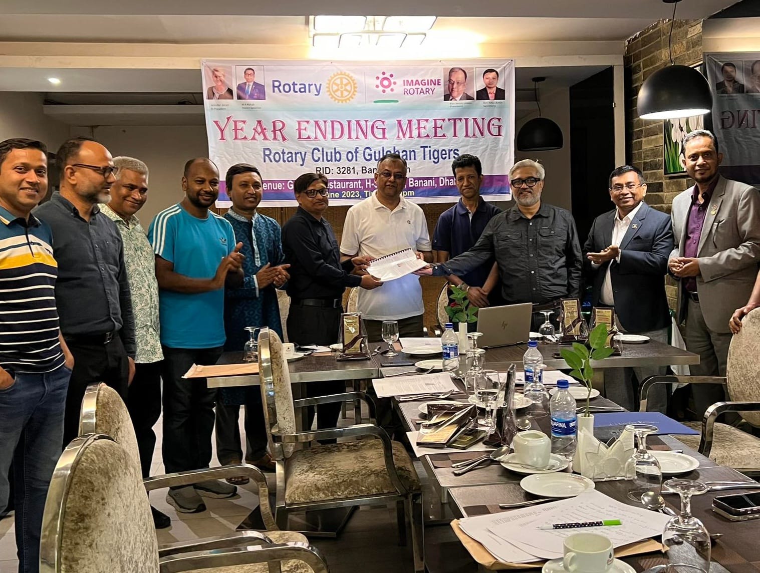 - President, Rtn Jasim Uddin adjourned the meeting until the next regular meeting on Satureday, 8th July 2023, at 9:30 pm at Galesia Hotel & Resort Ltd. Banani, Dhaka.